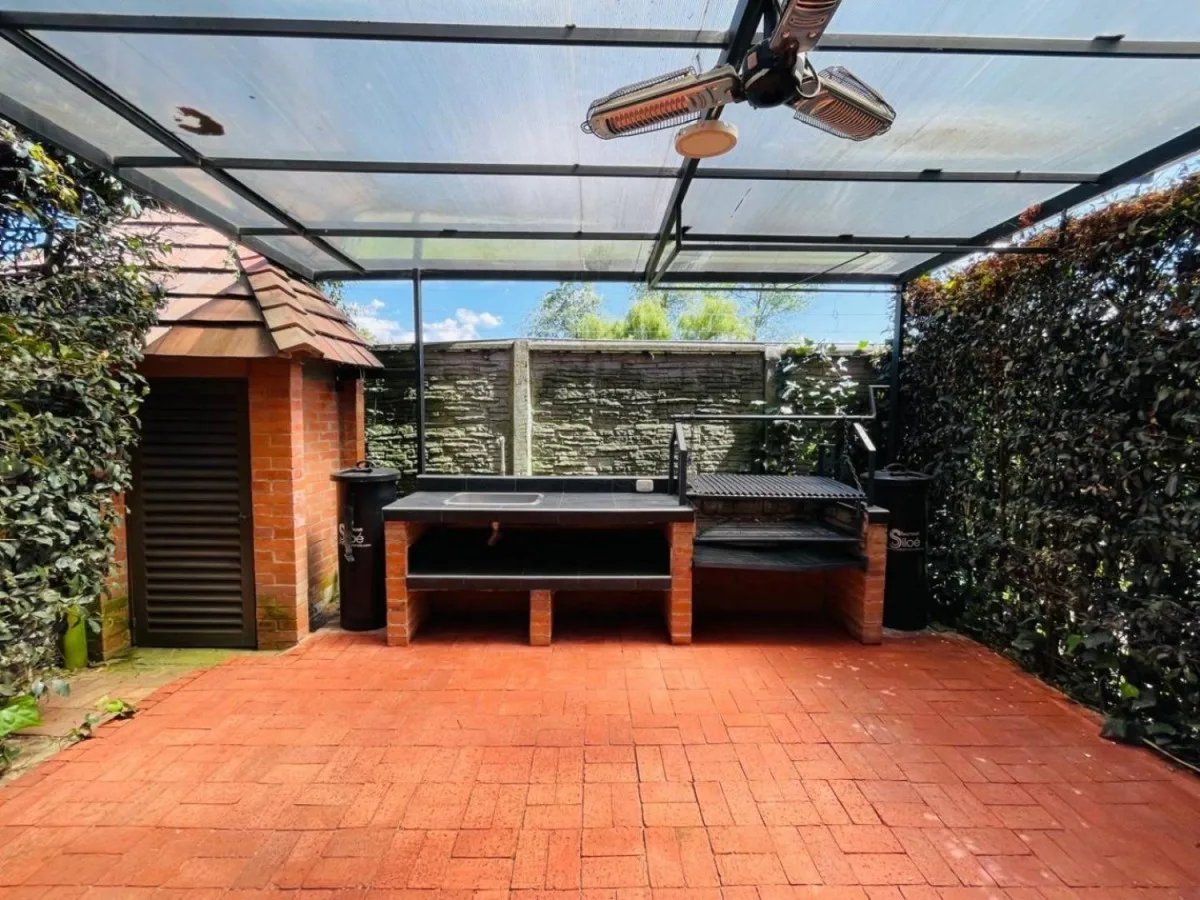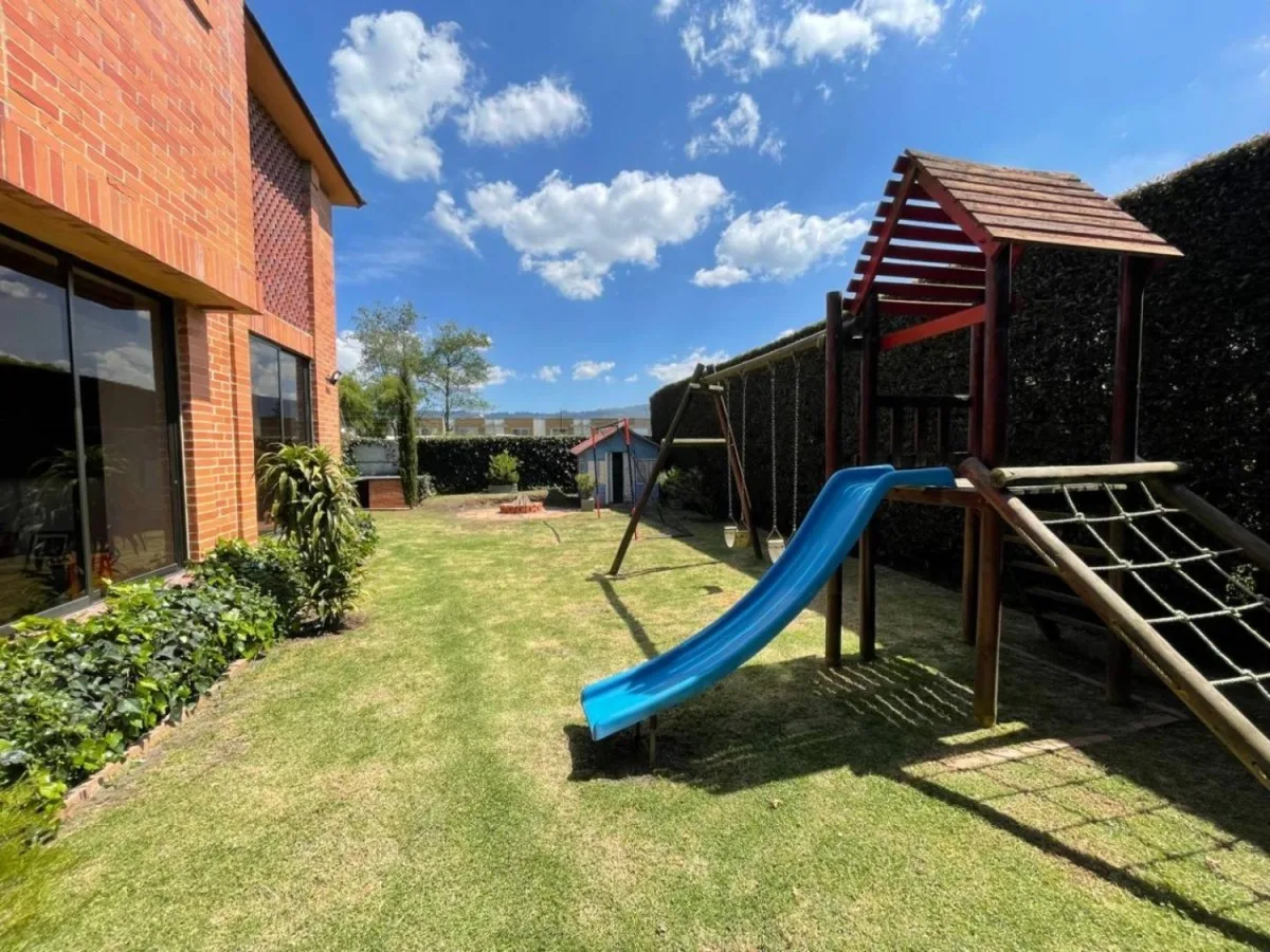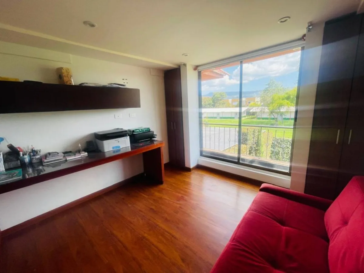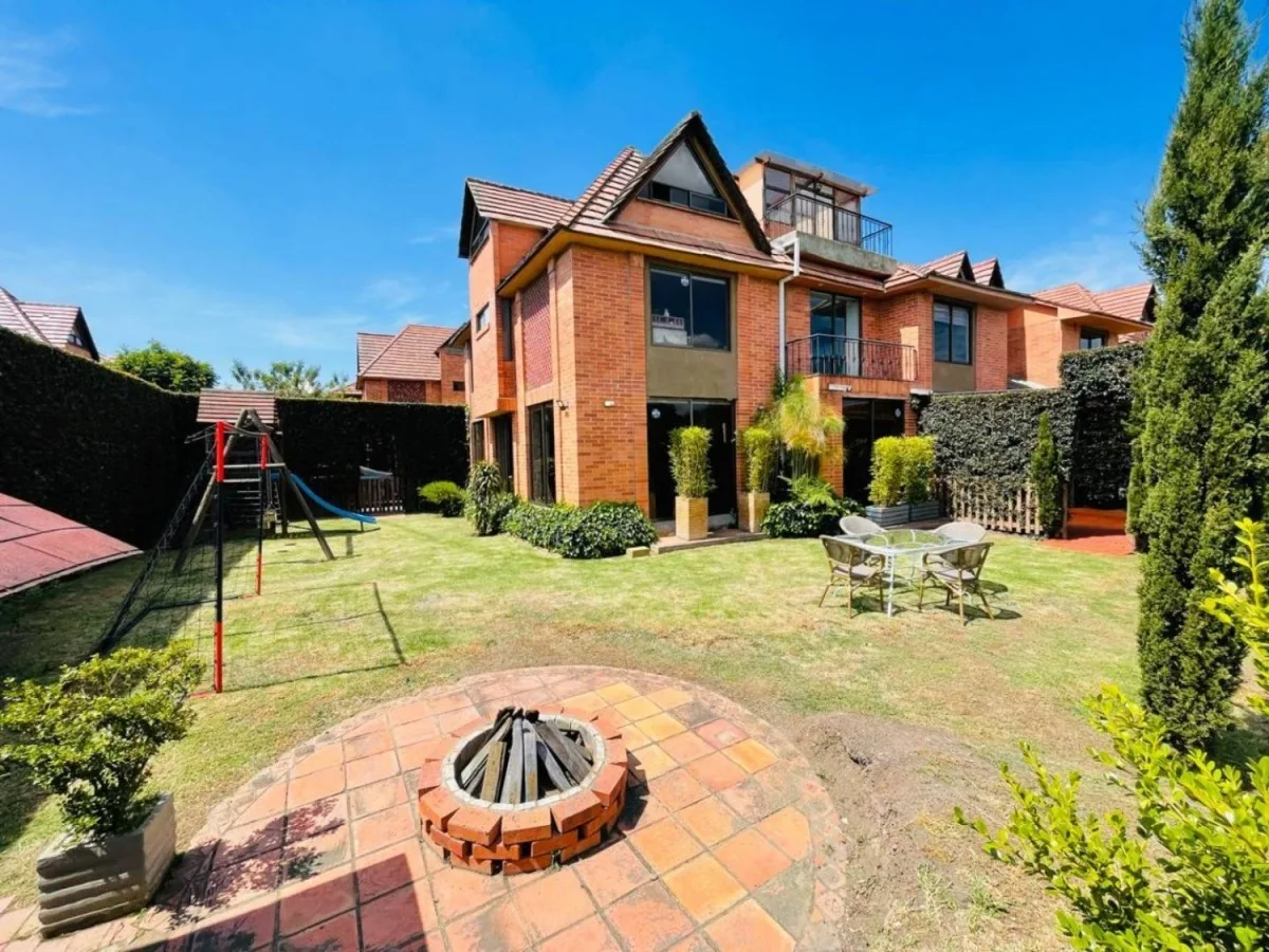 Espectacular casa en conjunto residencial ubicada en chia, cuenta con doscientos ochenta metros construidos, y quinientos veinte metros de área de lote, con tres niveles distribuidos de la siguiente manera en el primer piso cuenta con sala y comedor independientes, con salida al jardín, estudio, cocina integral cerrada con zona de lavandería, cuarto y baño de servicio, zona bbq, parque infantil privado, un garaje cubierto y espacio descubierto hasta para tres carros, en el segundo nivel cuenta con tres habitaciones con closet, la principal con baño privado, baño de alcobas, estudio con salida al balcon y star de TV con salida al balcon, en el tercer piso cuenta con altillo que se puede usar de habitación o estudio, terraza cubierta y balcon. El conjunto cuenta con vigilancia las 24 horas. 213-6408