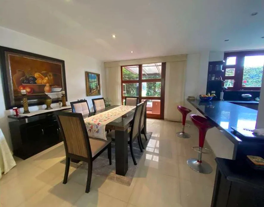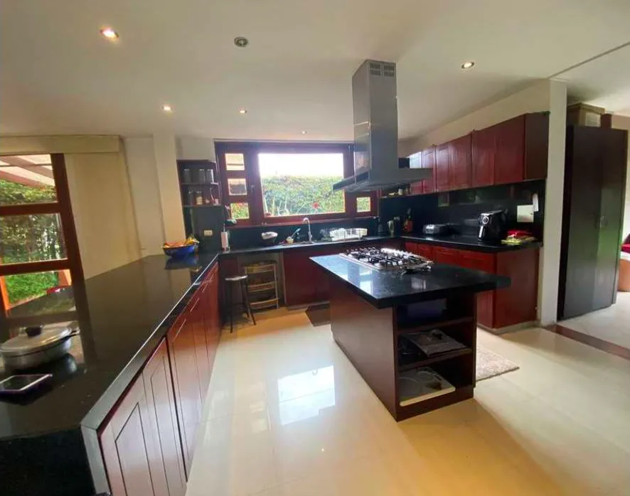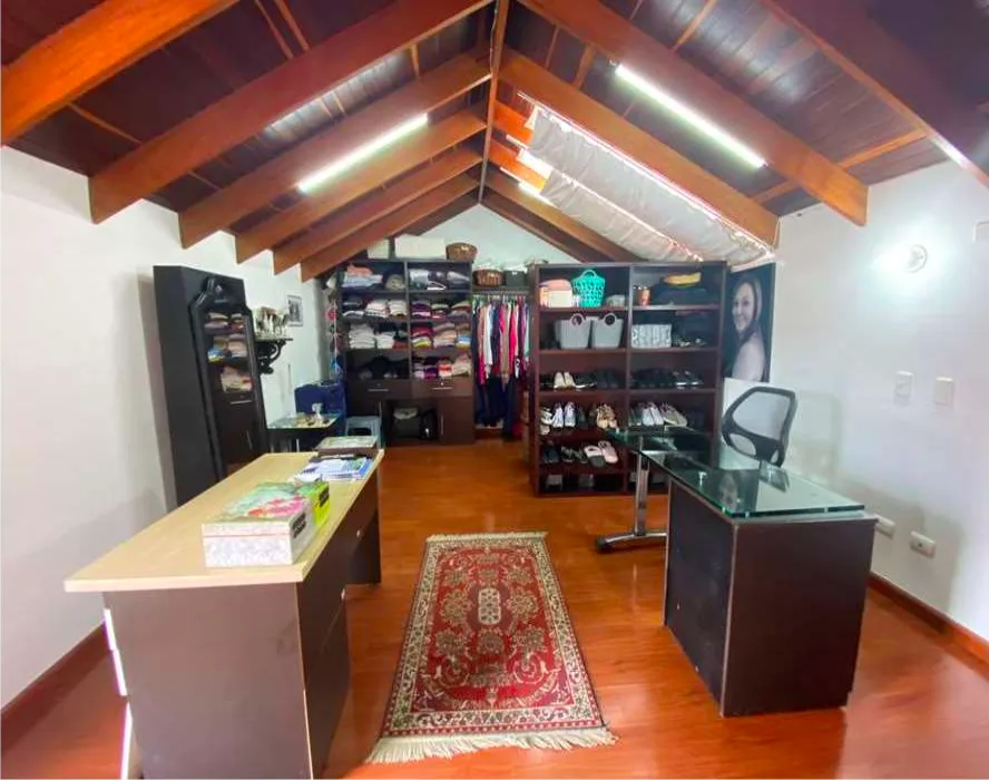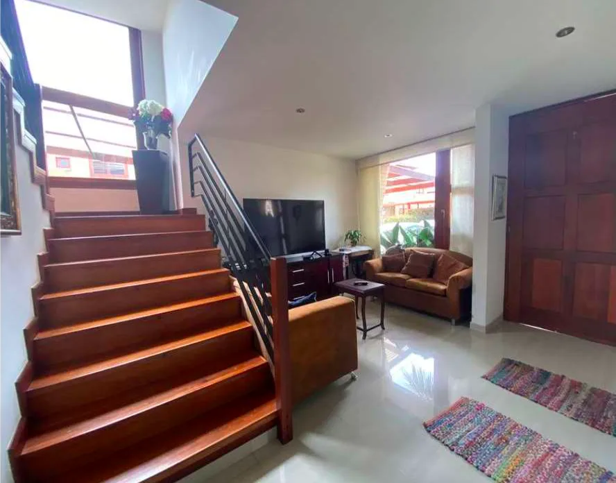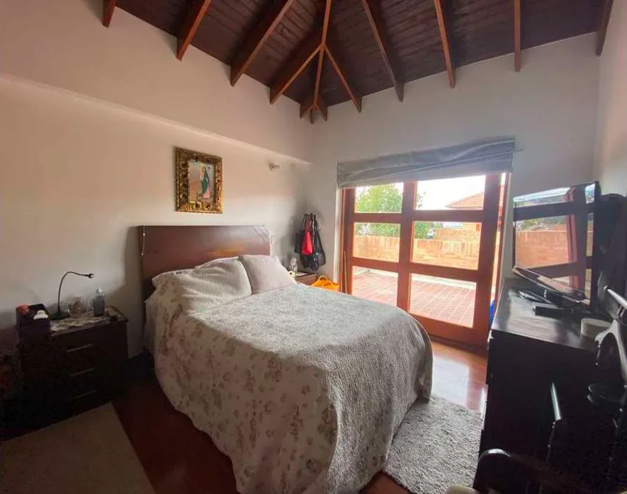 Venta en conjunto cerrado y en la tranquila Sabana de Bogotá, estrato 5, área de 229,59 M2. casa con espacios amplios muy iluminada con una gran vista y todas las comodidades. Primer nivel, Hall de acceso y sala de TV, sala y comedor independientes, baño social, cocina abierta, zona de ropas, alcoba y baño de servicio. Cuenta con zona verde y zona BBQ y con parqueadero cubierto para 4 vehículos. Segundo nivel cuenta con tres habitaciones, la principal con baño, Vestier y balcón, hall de alcobas amplio para estudio, segunda habitación con closet y balcón con una gran vista y la tercera habitación con closet y amplia terraza. Estas dos habitaciones comparten el baño. Su tercer nivel dispone de un gran altillo área múltiple muy iluminada con baño privado y terraza. La escalera que conduce al segundo y tercer nivel cuenta con escalones amplios en madera y pasamanos.