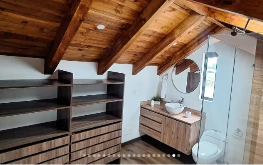 Exclusiva casa en arriendo, diseñada para el confort y la privacidad, que ofrece tres amplias habitaciones, cada una con baño privado. Disfrute de espacios generosos que incluyen una luminosa sala, un elegante comedor y una moderna cocina integral. Además, cuenta con un práctico baño social, depósito, una encantadora terraza, un funcional estudio y dos parqueaderos privados para su total comodidad.