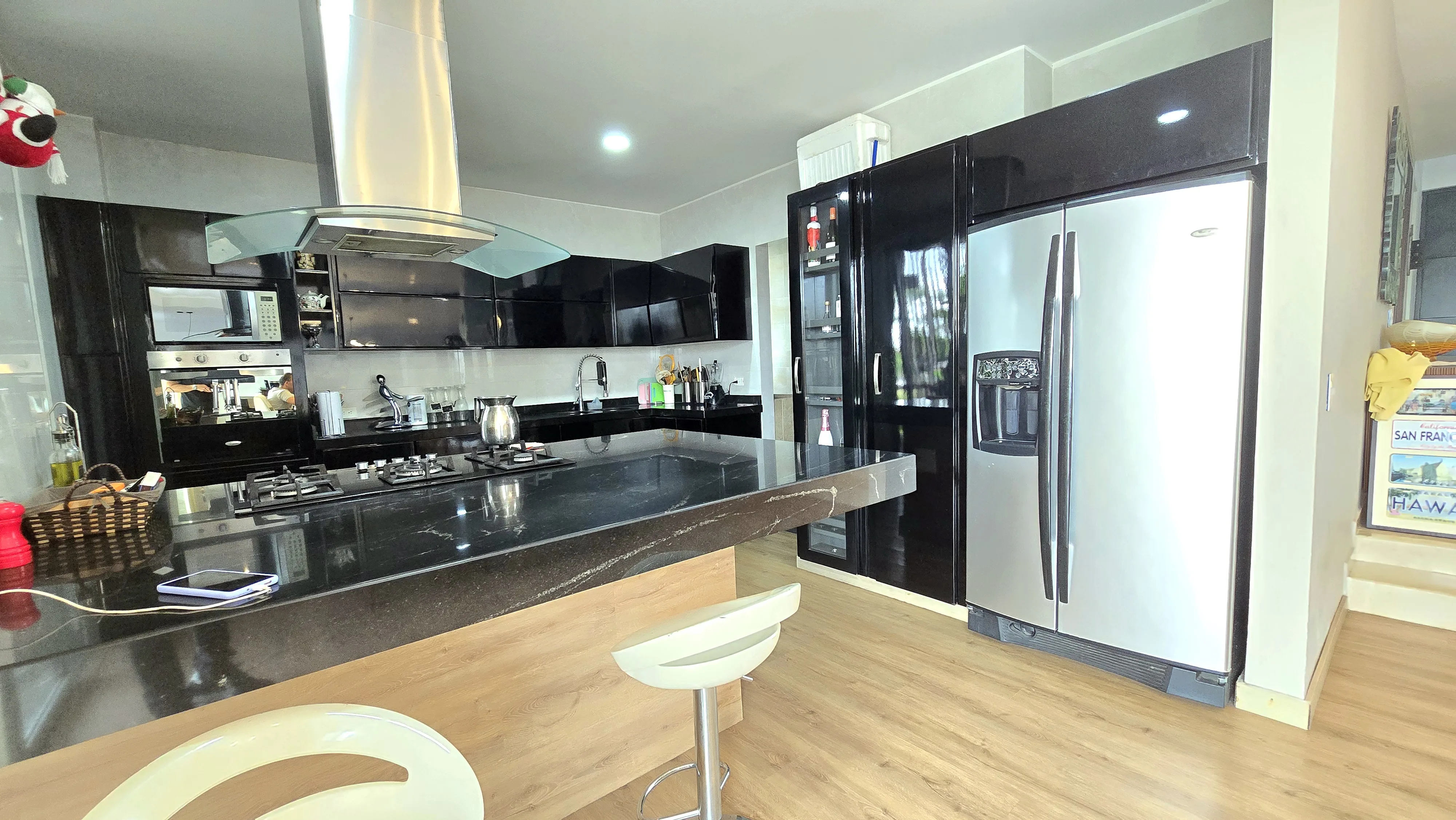 - Características Interiores: Amoblado, Balcón, Barra estilo americano, Baño Auxiliar, Calentador, Citófono, Cocina Integral, Cocina tipo Americano, Comedor auxiliar, Depósito / Bodega, Despensa, Estudio, Hall de Alcobas, Instalación de gas, Jaula de Golf, Oficina de negocios, Piso en Baldosa / Mármol, Planta Eléctrica, Sala de internet, Sauna / Turco / Jacuzzi, Terraza, Vista panorámica
