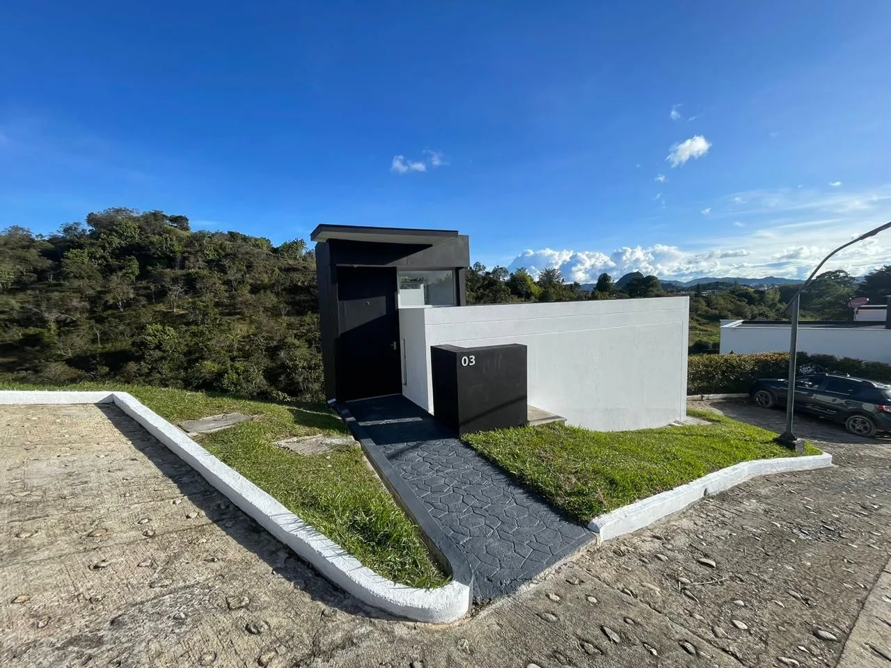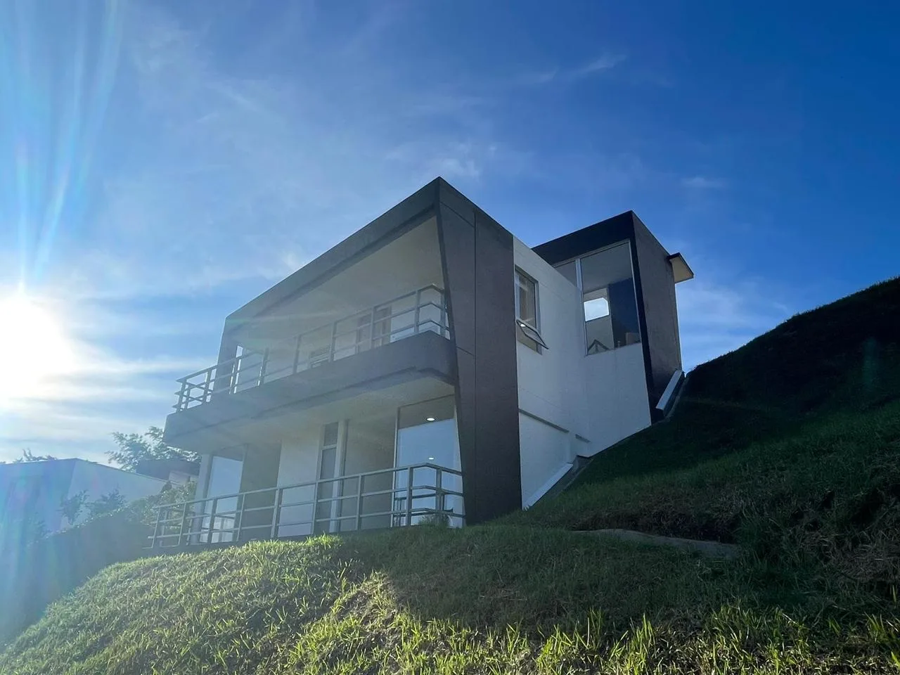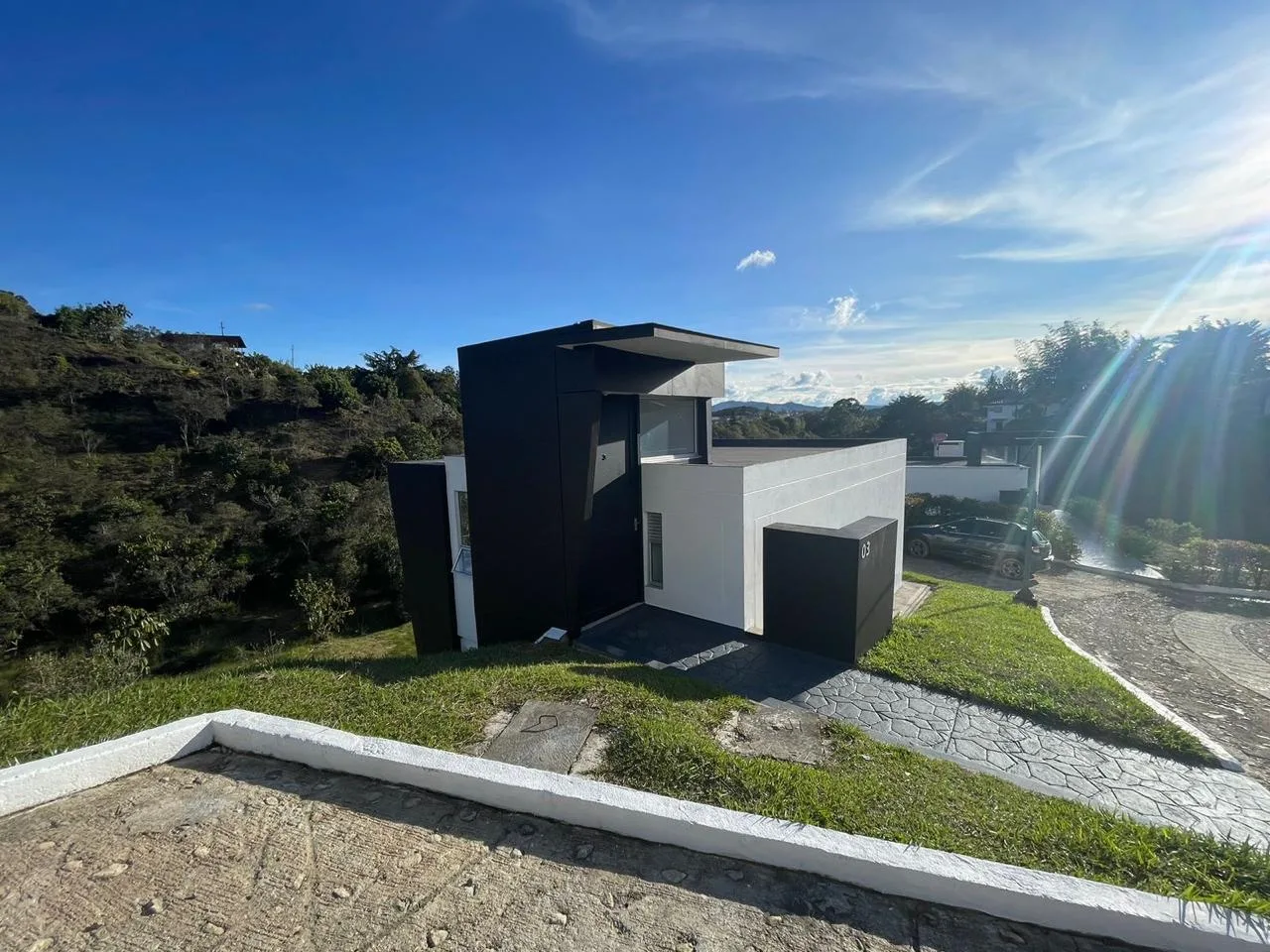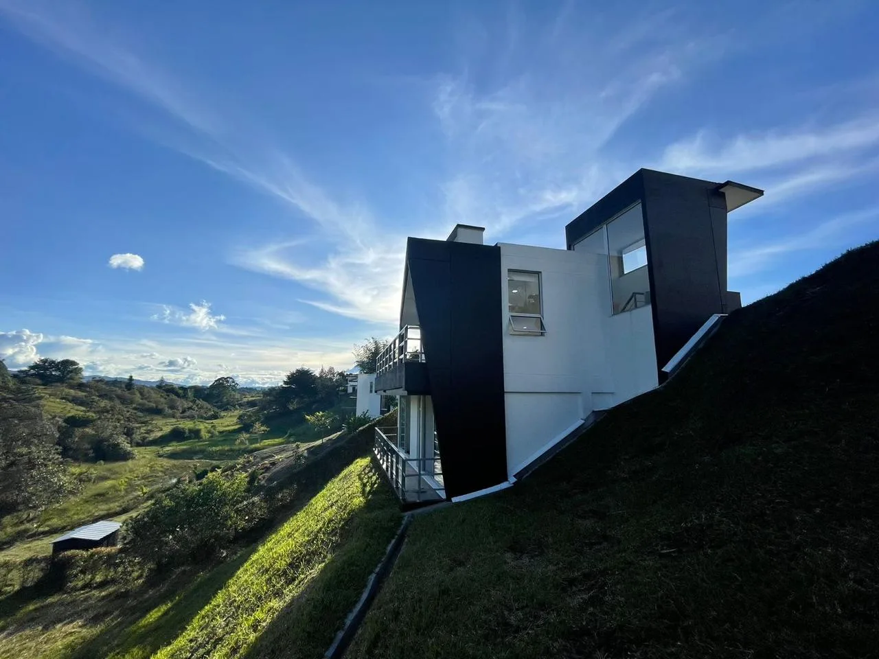 La casa queda dentro del condominio Colina View que está ubicado a 5 minutos del municipio de Guatapé Antioquia y está conformado por 27 casas campestres de dos pisos implantadas en un terreno de topografía inclinada y un salón social. El ambiente ecológico del condominio conserva la vegetación existente del lugar y sus fuentes hídricas.
