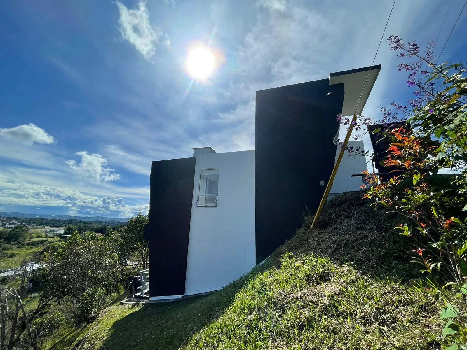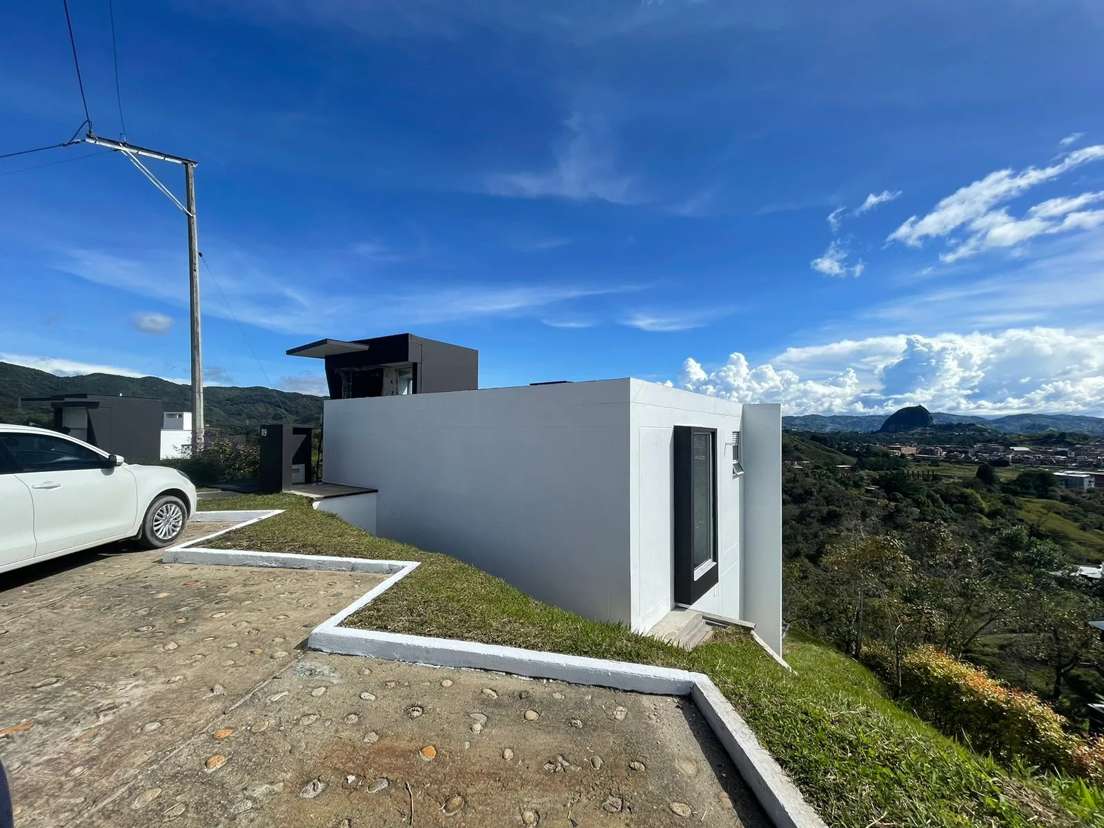 La casa queda dentro del condominio Colina View que está ubicado a 5 minutos del municipio de Guatapé Antioquia y está conformado por 27 casas campestres de dos pisos implantadas en un terreno de topografía inclinada y un salón social. El ambiente ecológico del condominio conserva la vegetación existente del lugar y sus fuentes hídricas.