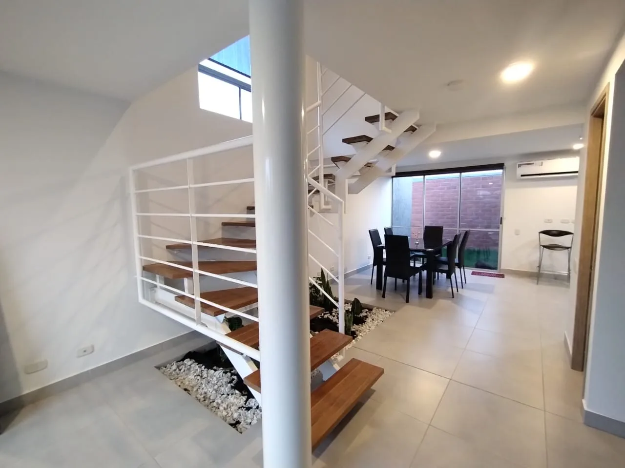 ? Primer piso: Espaciosa sala-comedor, estar de TV (o habitación), baño completo con ducha, un hermoso jardín interior bajo la escalera, moderna cocina abierta con muebles funcionales y zona de oficios con salida al jardín en forma de L.