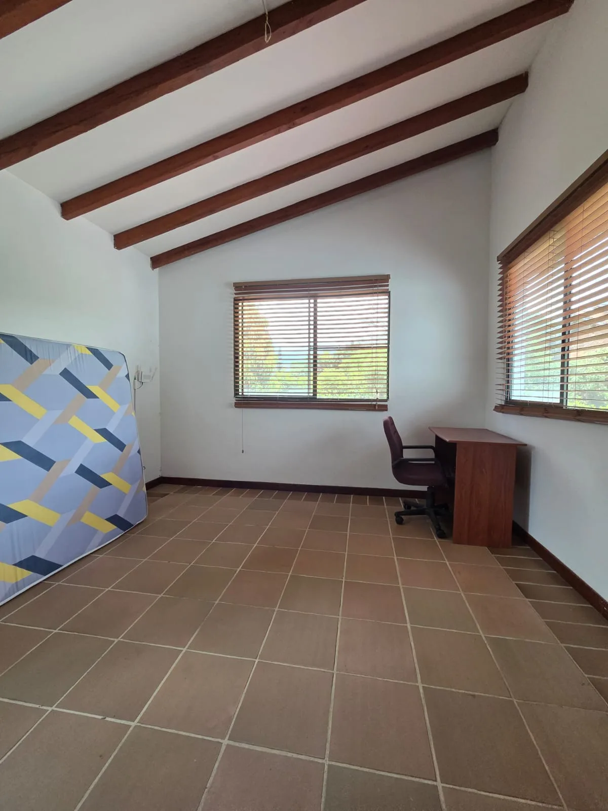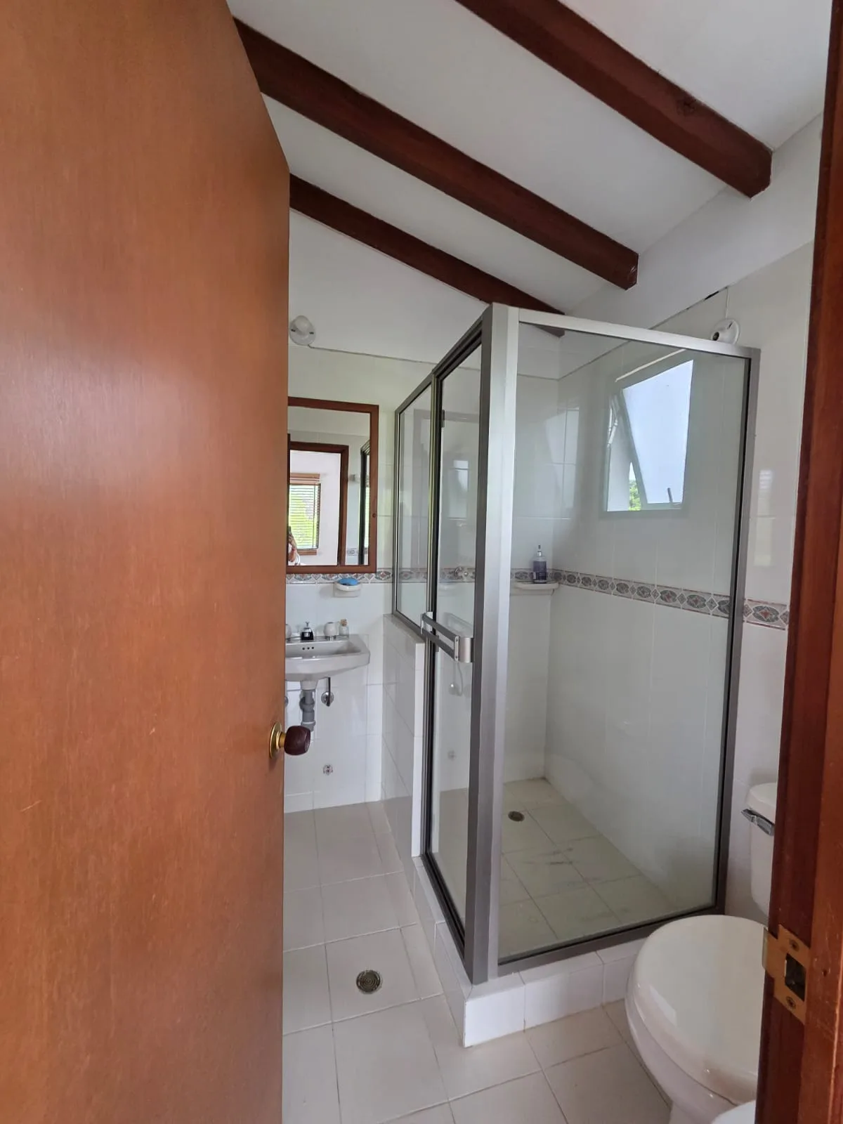 3 alcobas en primer piso. La ppal con baño. Baño alcobas y en el segundo piso una alcoba con baño.