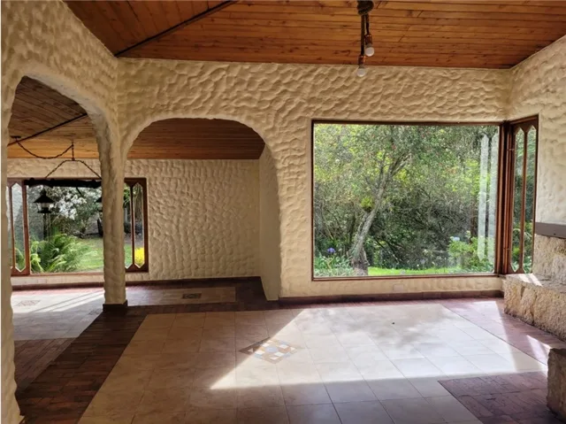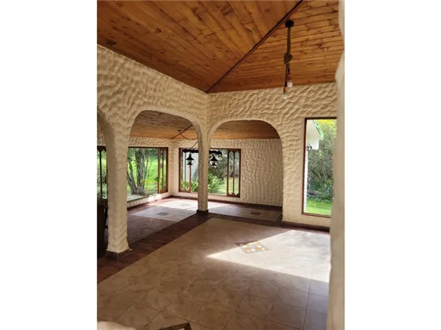 Ambiente campestre, tranquilo, zona BBQ, kiosco, jardines, zonas verdes, cercas y setos perimetrales. La casa cuenta con tres habitaciones, dos chimeneas una de ellas en la habitación principal, estudio, cocina abierta, cuenta con cuarto y baño de servicio. El area del lote es plano. .