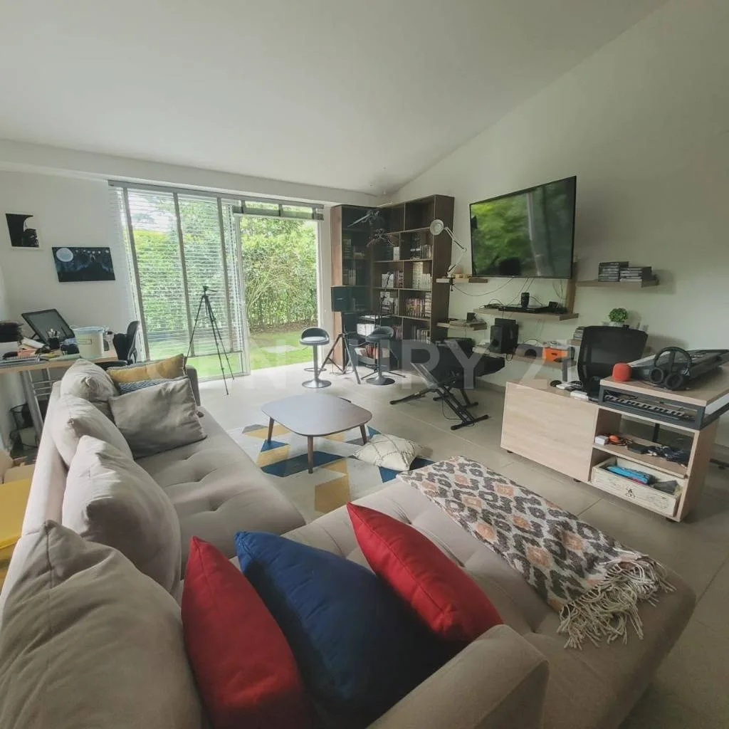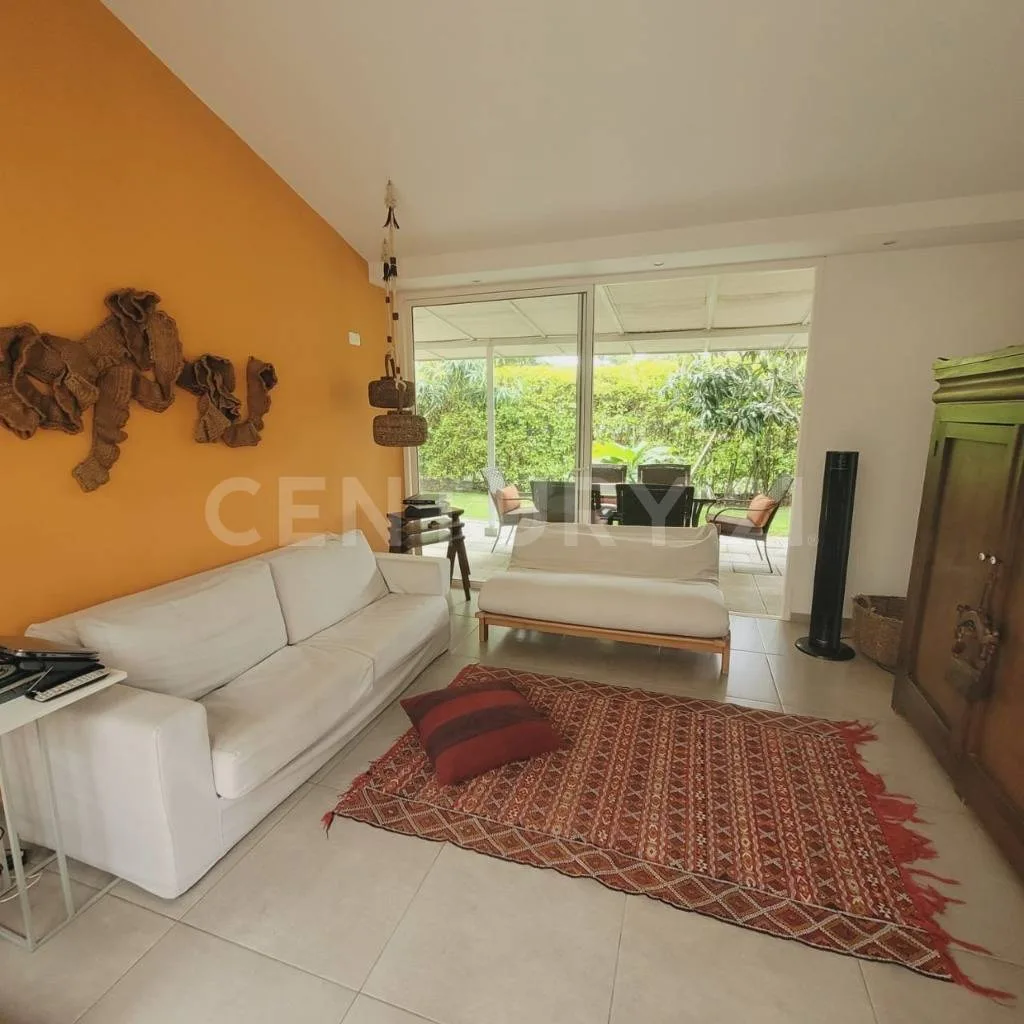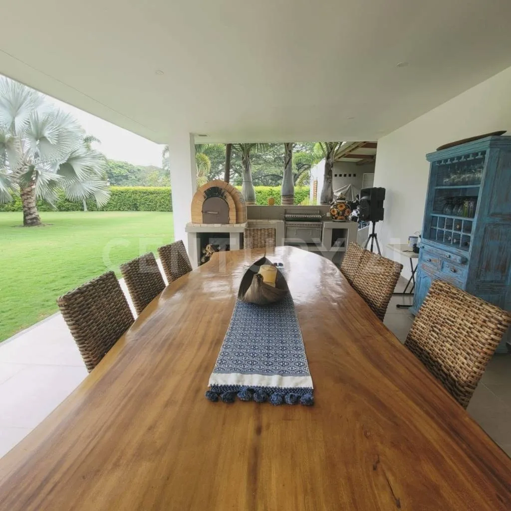 Se alquila linda y amplia Casa de 268 M2 en Condominio Forestal Club Lote 55 cuyo techo es a Doble altura, Ventanales con salida al jardín o a terraza auxiliar, en todos los espacios, 3 Habitaciones cada una con su walking clóset y baño, Una de ellas se integra con un estudio súper amplio con una gigante biblioteca, Baño social, Sala de TV, Sala comedor, Cocina abierta con lavadora de platos, nevera para vinos y (2) alacenas, Amplia zona de lavandería con espacio para lavadora y secadora, Terraza social de 65 mt2 con horno de leña, asador, caja china, Baño y ducha exterior y Cuarto del servicio con baño. _x000D_