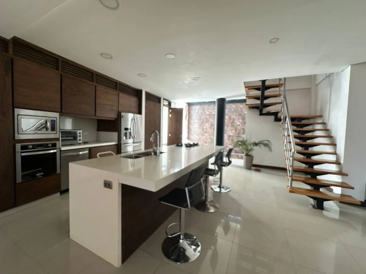 - Características Interiores: Balcón, Barra estilo americano, Baño Auxiliar, Chimenea, Closet, Cocina Integral, Cocina tipo Americano, Comedor, Estudio