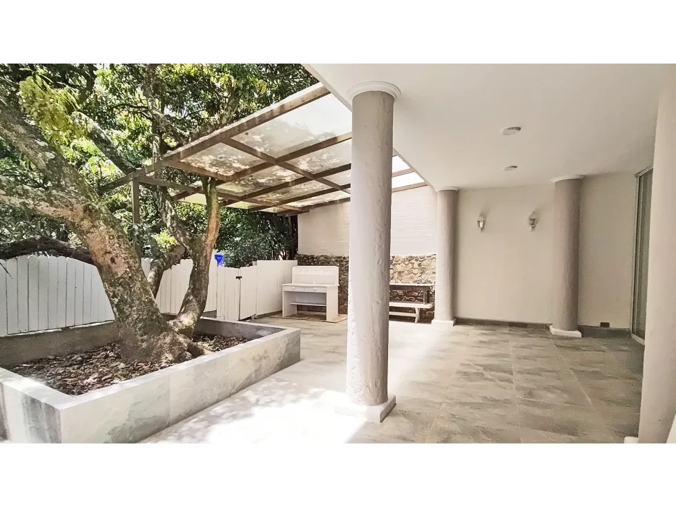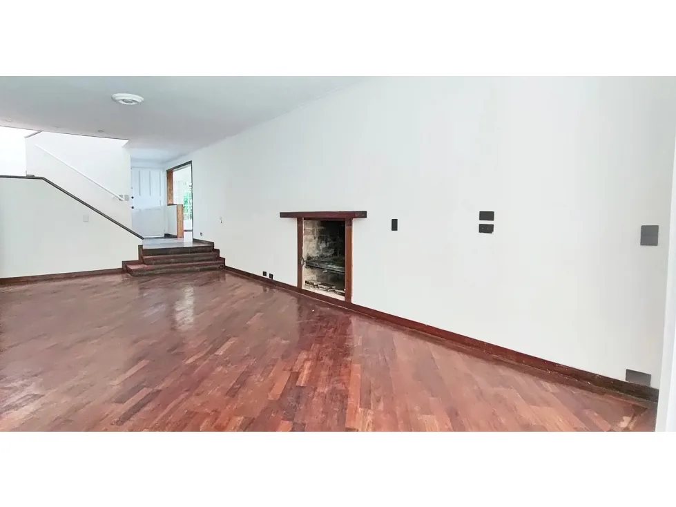 Tiene 3 niveles, En el primero encontrarás una cocina abierta hacia el comedor, zona de ropas, cuarto y baño de servicio, baño social, gran espacio con chimenea para sala que se conecta al patio trasero con amplia zona verde, que tiene BBQ y acceso directo al parque infantil de la unidad. En el segundo nivel habitación principal de gran tamaño, con vestier, baño y balcón, habitación auxiliar con vestier, baño y balcón privado y otras dos habitaciones auxiliares que comparten un baño. En el tercer nivel se encuentra un espacio tipo mezzanine que puede ser estudio, sala de TV o zona de juegos.Predial $1.612.000 trimestral