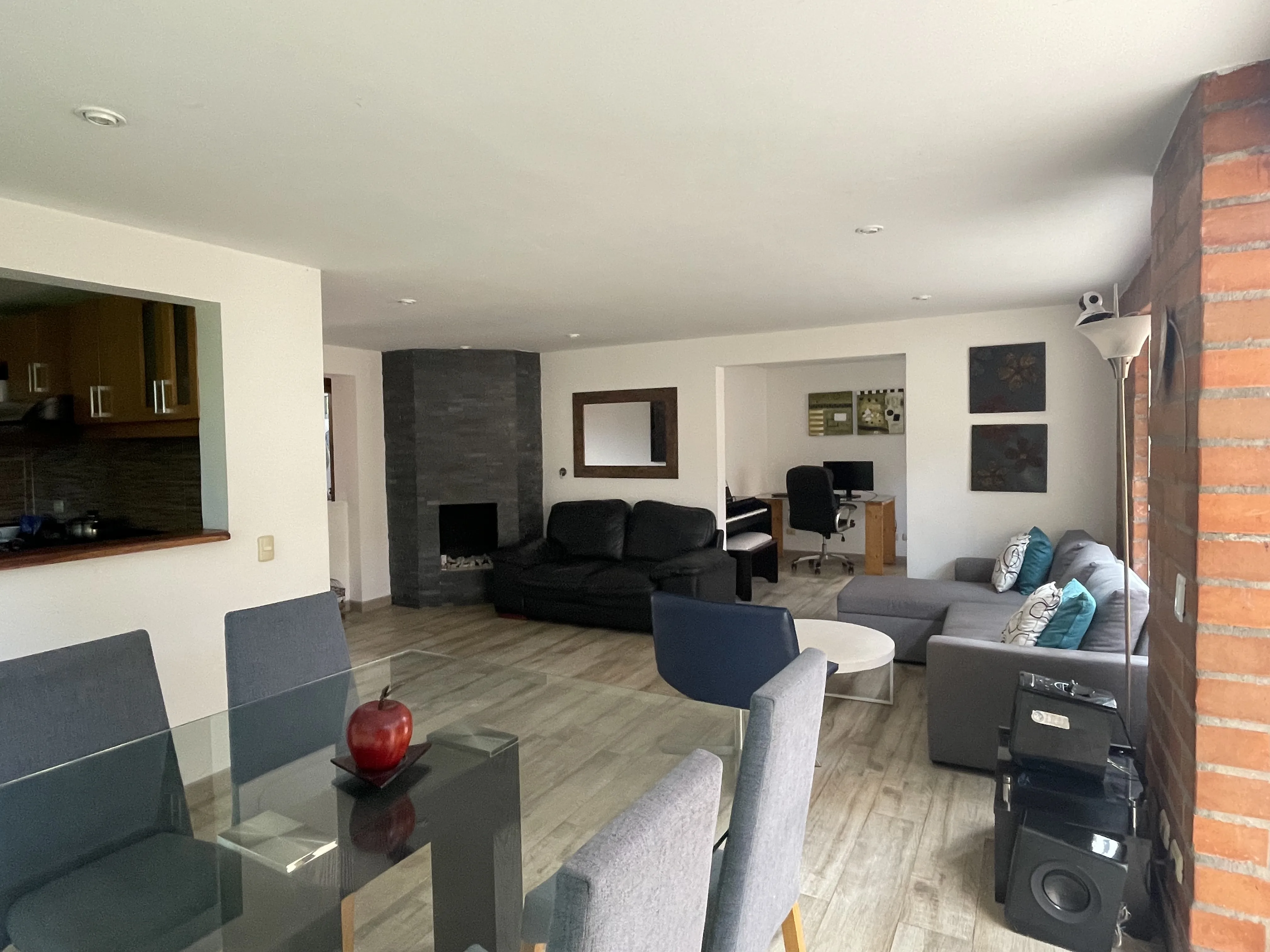- Características Interiores: Balcón, Barra estilo americano, Baño Auxiliar, Calentador, Chimenea, Cocina Integral, Depósito / Bodega, Despensa, Estudio, Hall de Alcobas, Instalación de gas, Piso en Baldosa / Mármol, Vista panorámica