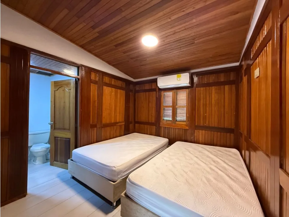 Se arrienda casa remodelada de 4 habitaciones, 4 baños, sala comedor, cocina, terraza, jardín, patio y 2 parqueaderos, ubicada en Conjunto Villas del Palmar. Originalmente eran 2 casas y las mismas fueron unidas en 1.