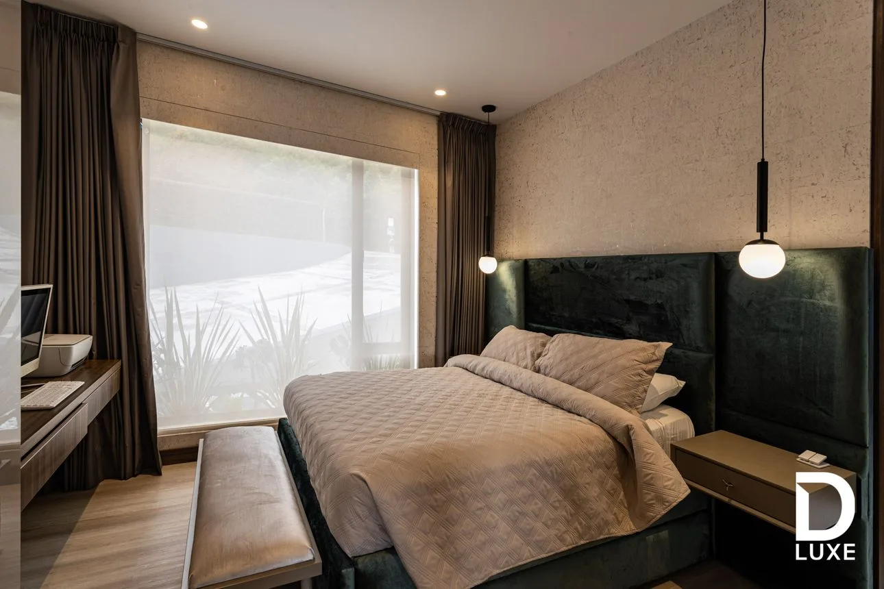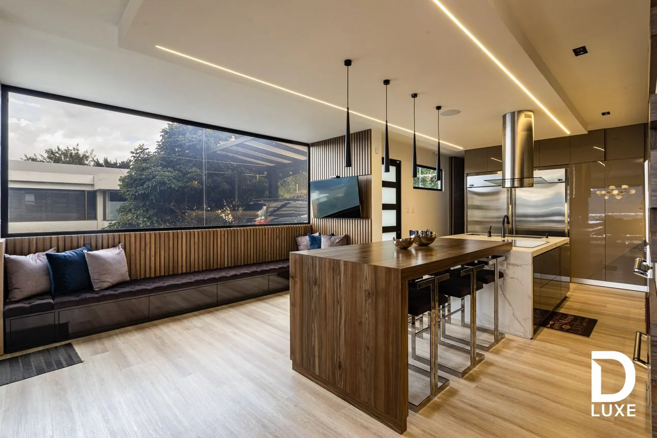 DLuxe les presenta esta hermosa y modernísima casa con acabados de lujo con espacios amplios e iluminados e impresionante vista que te permiten disfrutar un ambiente de lujo con la familia y amigos. La integración con la casa te la permitirá un completo y muy sofisticado sistema de automatización desde calefacción a vidrios inteligentes con Smart Film. En un lote de 1001 m2 vemos este portento de modernidad de 700 m2 de área privada. Consta de 5 habitaciones con sus baños privados e impresionantes walk in closet. Sala y comedor muy amplios, en extremo modernos y bien distribuidos; chimenea a gas; cocina con electrodomésticos de lujo. No querrás salir de casa disfrutando de su estupenda zona húmeda, su gimnasio y su sala de teatro con 14 sillas, baño privado y una pintoresca y cinematográfica máquina de crispetas.