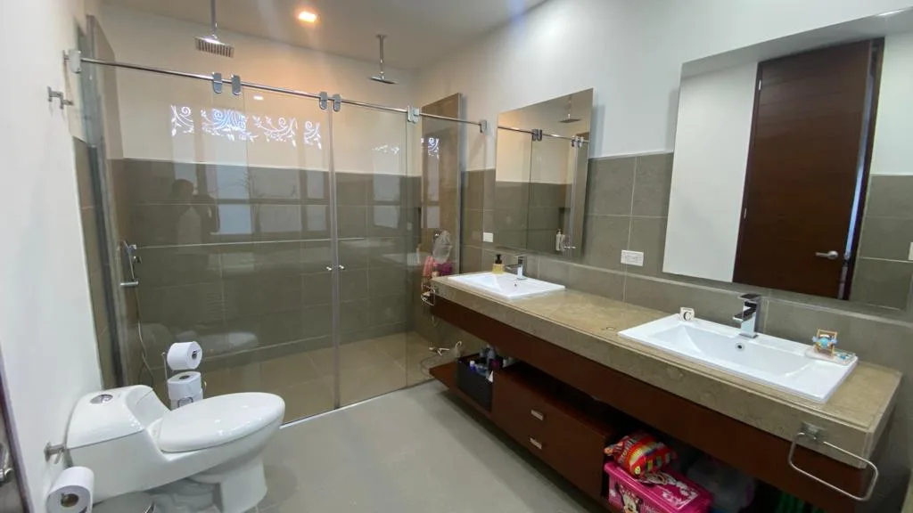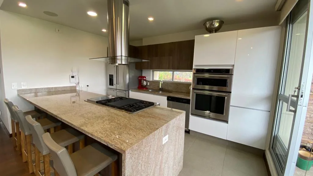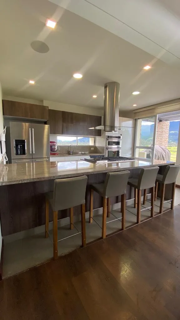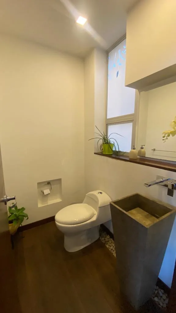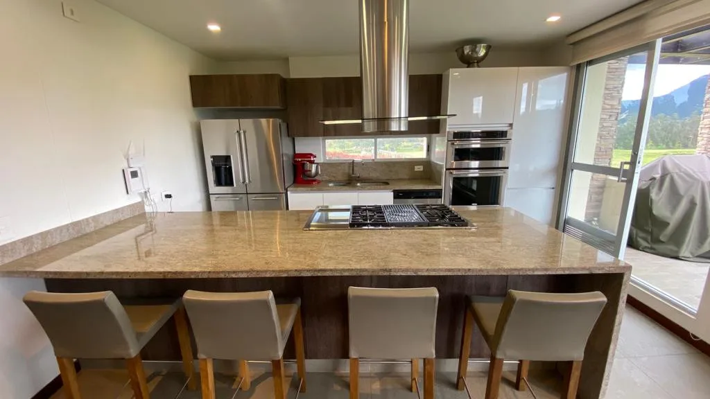 Cuenta con 4 habitaciones, cada una con baño privado, más 1 baño social, una moderna cocina integral abierta con lavaplatos eléctrico, sala y comedor con chimenea a gas, sala de TV, estudio, cuarto de ropas, depósito. además, incluye jacuzzi, 2 terrazas, fogata exterior y 2 parqueaderos cubiertos, la casa está equipada con blackouts, shut de basuras, sistema completamente eléctrico (sin gas natural), antigüedad: 7 años – Libre de hipoteca – No se acepta permuta.