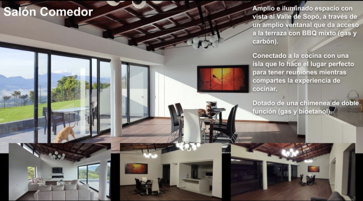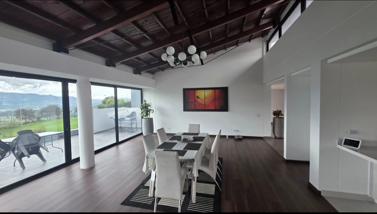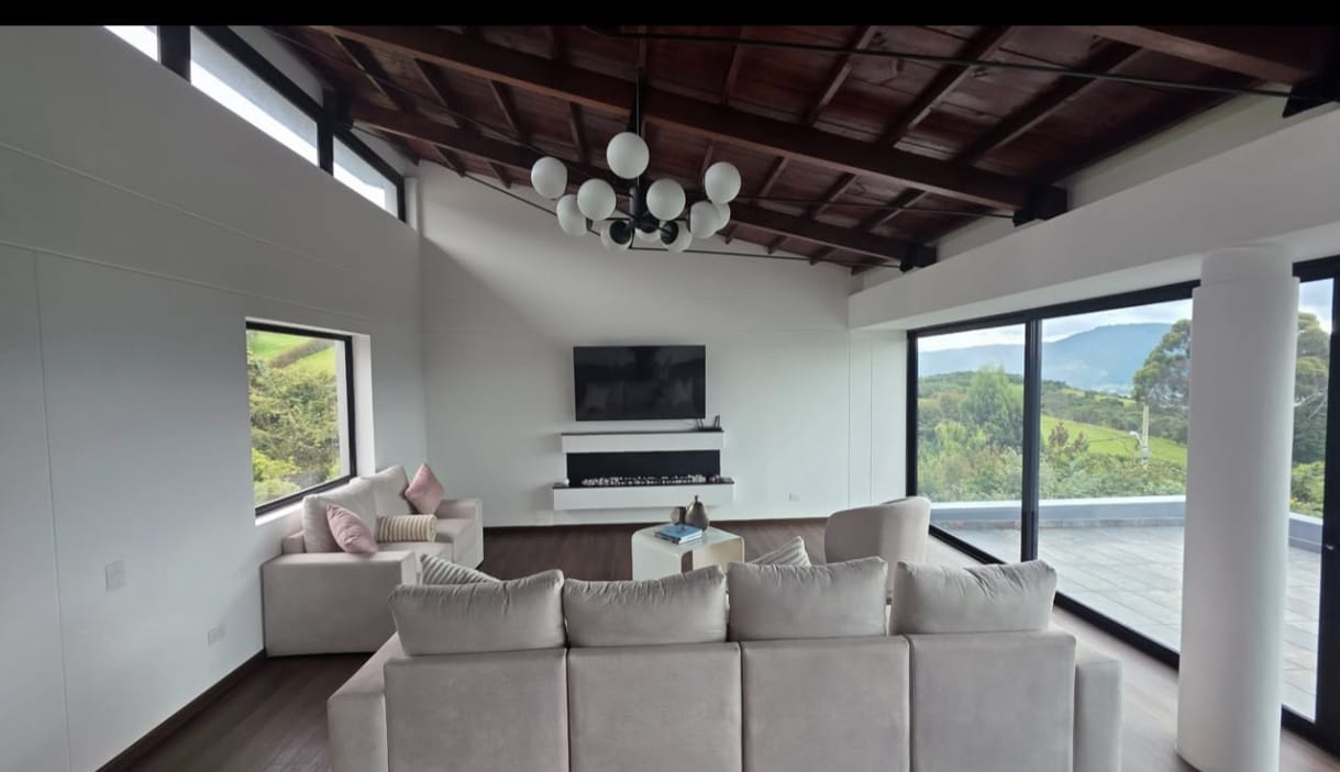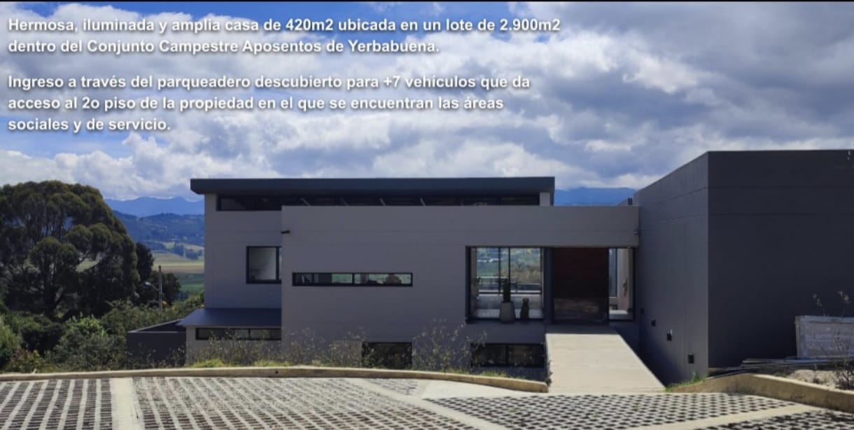 Casa campestre de lujo en Yerbabuena con vista al Valle de Sopó. Vive rodeado de naturaleza, amplitud y confort en esta espectacular casa campestre de 420 m² construidos sobre un lote de 2.900 m², en exclusivo conjunto campestre de Yerbabuena,ubicado a 30 minutos de Bogotá. La propiedad destaca por su diseño arquitectónico funcional, excelente iluminación natural y una vista privilegiada al Valle de Sopó desde múltiples espacios. Áreas sociales diseñadas para disfrutar. El acceso principal conduce a una amplia zona social que integra salón y comedor con ventanales de piso a techo, chimenea de doble función (gas y bioetanol) y salida directa a una terraza con BBQ mixto (gas y carbón), ideal para reuniones familiares o sociales. La cocina integral, moderna y espaciosa, cuenta con isla central, doble lavaplatos, lavavajillas, estufa a gas de 5 puestos y horno eléctrico, convirtiéndose en el corazón de la casa. Comodidad y privacidad en cada nivel. La vivienda ofrece habitaciones amplias y bien distribuidas, garantizando privacidad y descanso: Habitación principal con vista al valle, walking closet y baño privado con doble lavamanos y espacio para jacuzzi, rodeado de un jardín interior que aporta luz y tranquilidad. Dos habitaciones auxiliares, cada una con baño privado; una de ellas con salida directa al jardín. Habitación adicional en planta alta, con acceso plano, ideal como oficina, estudio o para personas con movilidad reducida. Espacios versátiles. En la planta baja encontrarás un family room, un amplio salón de juegos o gimnasio con vista al paisaje, y un baño social estratégicamente ubicado. Además, la casa cuenta con espacios aprovechables que se adaptan a distintas necesidades. Zona de servicio completa. Incluye cuarto de servicio con baño privado, alacena, cuarto técnico, zona de lavandería independiente, área para secado de ropa y sistema de almacenamiento de agua. La propiedad está preparada para conexión a gas natural. Parqueaderos y entorno. Parqueadero descubierto con capacidad para más de 7 vehículos, dentro de un entorno campestre seguro, tranquilo y exclusivo. 🏡 Áreas comunes del condominio: • 🪄 Salón comunal • 🏋🏼♀️ Gimnasio • 🏊 Piscina • 🧖🏼 Sauna y turco • 🥩 Terraza con BBQ • 🛝 Parque infantil • 🤾🏼♀️ Cancha de tenis • ⚽ Cancha de fútbol 7 • 👮🏼♀️ Vigilancia privada 24/7 Una casa ideal para quienes buscan calidad de vida, contacto con la naturaleza y espacios amplios sin renunciar al confort. 📍 Yerbabuena – Altos de Sopó 📞 Visitas con cita previa.