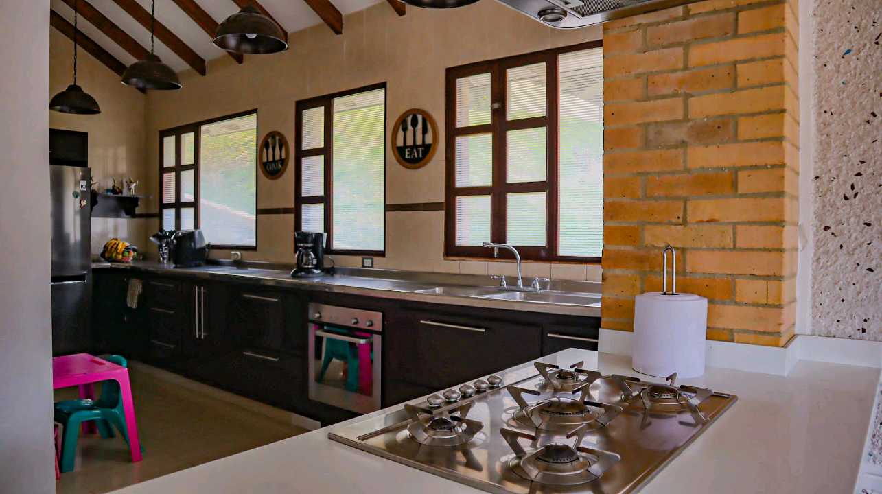 Esta espaciosa y cómoda casa campestre se encuentra en un lugar privilegiado de Tocancipá, rodeada de naturaleza y con una vista panorámica que te dejará sin aliento. Está ubicada en una zona residencial tranquila y exclusiva que ofrece la tranquilidad que buscas para tu hogar. Con una extensión de terreno de 4.800 m2 esta casa es perfecta para familias grandes que buscan amplitud y comodidad. Dispone de 4 amplias alcobas, 3 baños y además cuenta con un baño auxiliar para mayor comodidad. Las habitaciones tienen armarios empotrados, ideales para mantener tus pertenencias organizadas. El diseño de esta casa es perfecto para reuniones y momentos en familia, ya que cuenta con una amplia cocina integral con barra estilo americano y una zona de BBQ o parrilla para disfrutar de deliciosas comidas al aire libre. También dispone de una biblioteca/estudio, ideal para trabajar cómodamente desde casa. Además, podrás disfrutar de la calidez y la comodidad de la chimenea en los días más fríos. La casa está equipada con todas las comodidades necesarias para tu confort, como calentador y sistema de electricidad. Además, cuenta con áreas adicionales como depósito, despensa y zona de lavandería. En cuanto a las características externas, la casa cuenta con acceso para discapacitados y acceso pavimentado. En la urbanización cerrada donde se encuentra, podrás disfrutar de zonas verdes y zonas deportivas como canchas de tenis. También tendrás acceso a portería/recepción y vigilancia las 24 horas del día, para tu seguridad y tranquilidad. A pesar de estar rodeada de naturaleza, la casa tiene una ubicación exterior que te permitirá tener acceso a servicios y comodidades como centros comerciales, colegios y universidades, centros médicos y transporte público cercano. Finalmente, debes saber que esta casa permite mascotas, por lo que podrás disfrutar de la compañía de tus amigos peludos en tu nuevo hogar. No esperes más para ser dueño de esta increíble casa campestre y disfrutar de una vida llena de comodidades y tranquilidad.