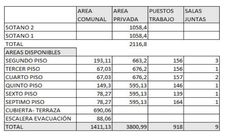Edificio corporativo con excelente ubicación en la localidad de Usaquén, ideal para empresas de gran operación. Cuenta con 7 pisos, 2 sótanos, terraza cubierta, 2 ascensores, amplia y moderna recepción, fachada flotante con control termo-acústico y capacidad aproximada para 918 puestos de trabajo. Dispone de control de accesos central, sistema CCTV, energía regulada, aire acondicionado, datacenter con respaldo energético y UPS, planta eléctrica de emergencia, múltiples puntos para access point Wi-Fi, control de accesos peatonal y vehicular, automatización y control de última tecnología, sistema de detección de incendios, cableado estructurado certificado CAT 6 y cableado eléctrico calibre 12 AWG. Área privada total aproximada de 3.800,99 m², área comunal de 1.411,13 m², 9 salas de juntas, terraza y escaleras de evacuación, además de 89 parqueaderos. Canon de arriendo: $75.000 por m² + IVA Administración: $18.000 por m² + IVA