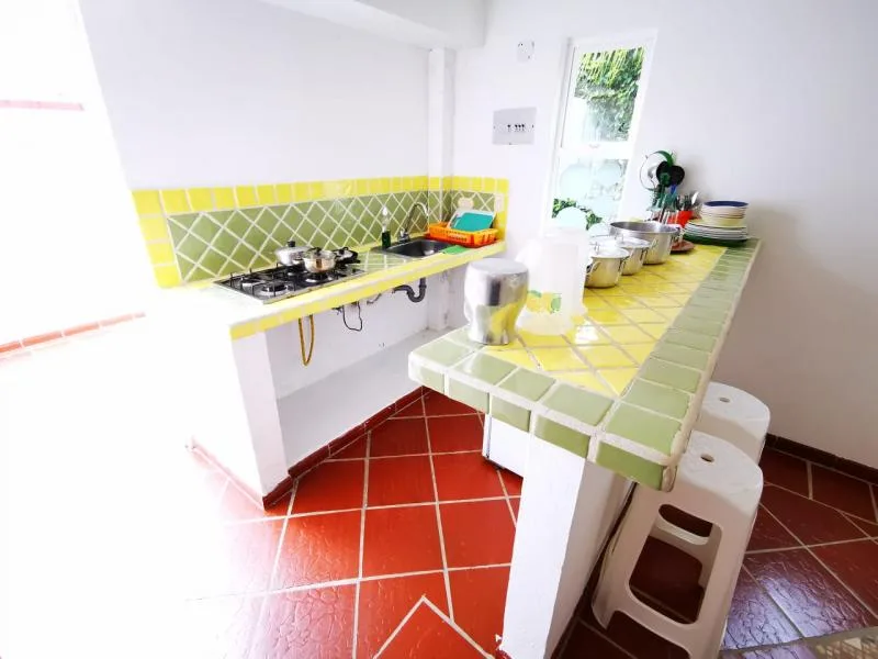 Hospedaje: 24 personasDescripción:4 cabañas con entradas independientes, cada una con Cocineta, sala-comedor, 2 habitaciones, 1 baño y patio de ropas.