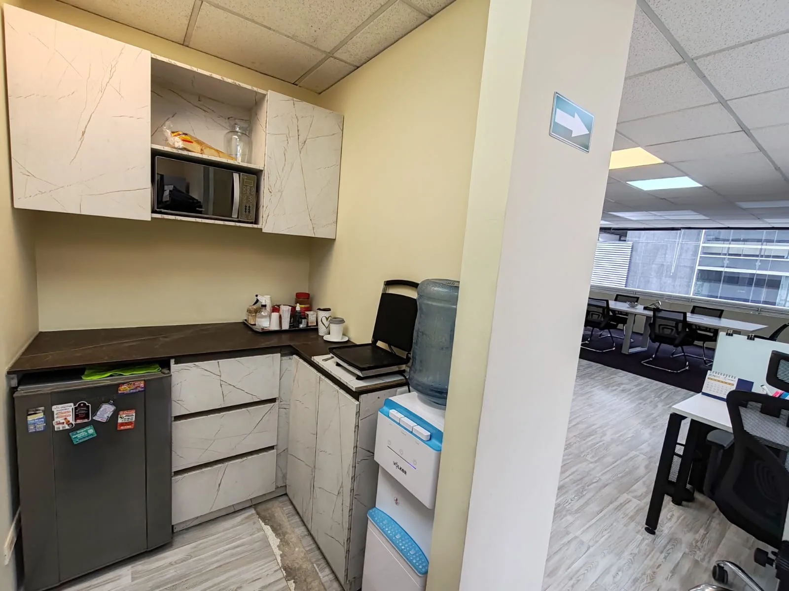 Estas amplias, dinámicas e iluminadas oficinas, constan de un área construida de 96.81m2, y un área privada de 91.25m2 en el piso 9 con vista exterior al occidente de la ciudad. Se encuentra configurada actualmente con espacios abiertos para área de recepción y recibo, 6 puestos de trabajo, sala de reuniones de 6 puestos, área privada de oficina gerencial, cocina y archivo. Baños a su salida en el mismo piso. Además 3 parqueaderos cubiertos e independientes en el sótano.