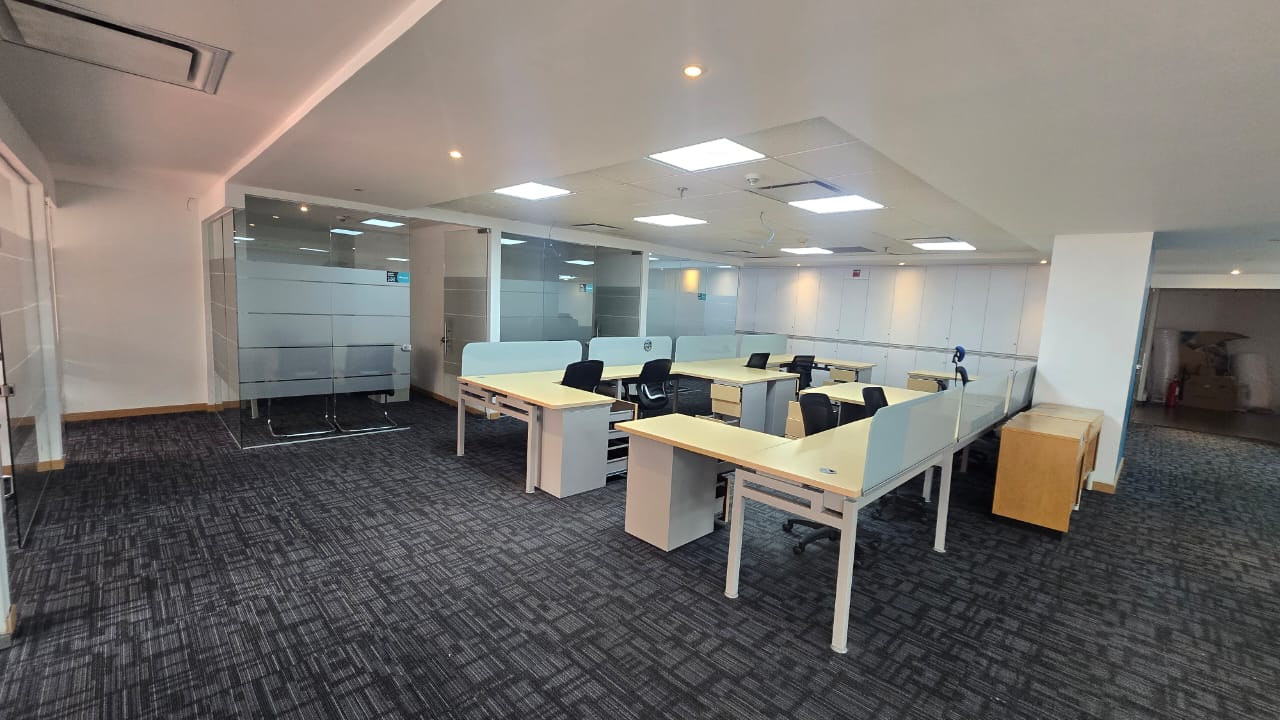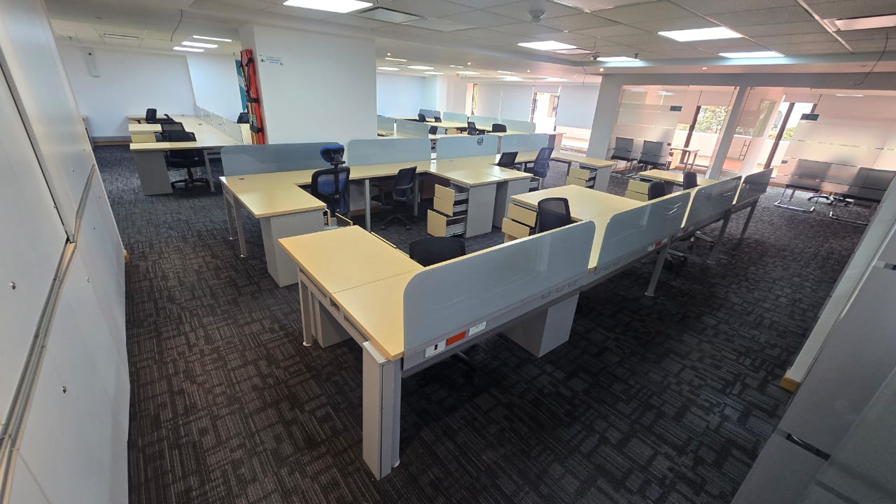 Oficina corporativa ubicada en uno de los complejos empresariales más reconocidos y estratégicos de la ciudad. El espacio cuenta con 417,99 m² en piso 2, con excelente iluminación, distribución funcional y posibilidad de adecuación según requerimientos operativos. Dispone de zona de recepción, áreas abiertas para estaciones de trabajo, oficinas privadas, salas auxiliares, auditorio, 2 baterías de baños para hombres y mujeres, iluminación LED y muros perimetrales en color blanco. La oficina puede entregarse adecuada y dotada con capacidad instalada hasta para 60 puestos de trabajo, salas de apoyo y auditorio, incluyendo mobiliario operativo, comedor y rack de comunicaciones según propuesta seleccionada. El edificio ofrece infraestructura corporativa de alto nivel, seguridad permanente, sótanos de parqueaderos y entorno empresarial consolidado. Se incluyen 7 parqueaderos (3 sencillos y 2 dobles) ubicados en sótano.