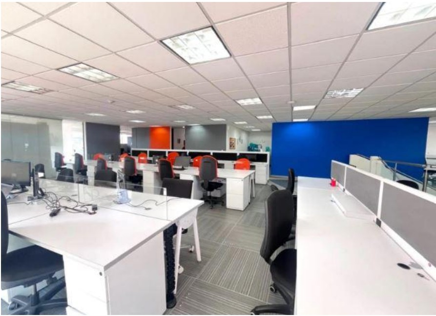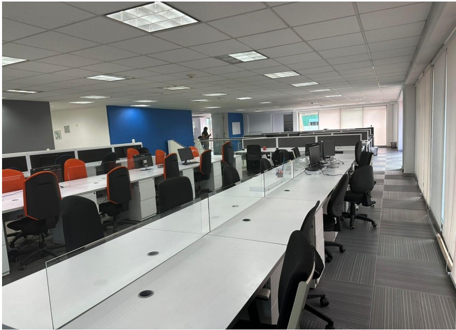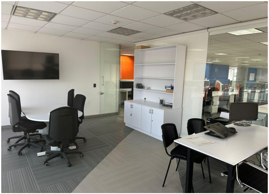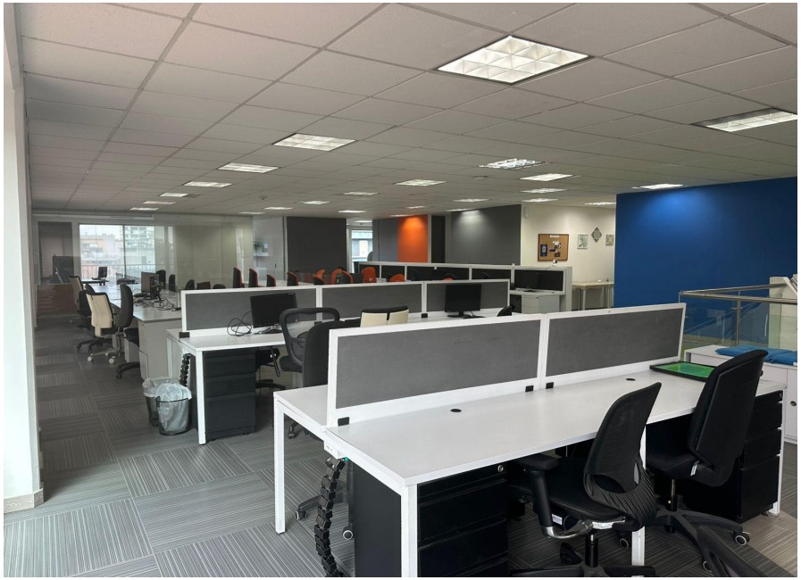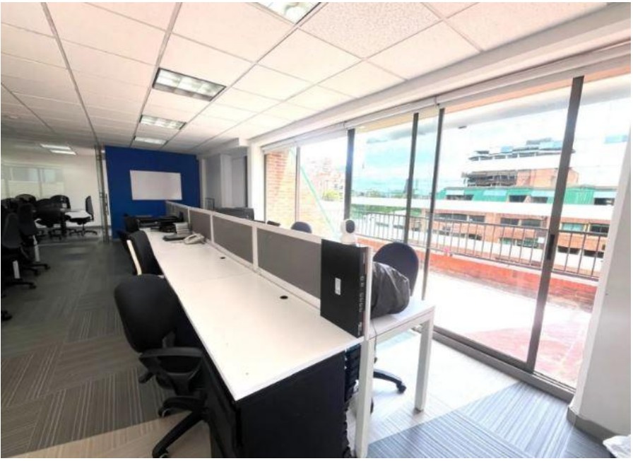 Oficina en arriendo de 320 m², completamente amoblada, ideal para empresas que buscan un espacio representativo, funcional y listo para operar. Cuenta con excelente distribución, terrazas alrededor que aportan iluminación natural y confort, y áreas diseñadas para equipos administrativos y directivos. CARACTERÍSTICAS • Área total: 320 m² • 60 puestos de trabajo en área abierta • Oficina de presidencia con baño privado • 3 oficinas privadas • 2 salas de juntas auxiliares (4 personas c/u) • Espacio para archivo o lockers • 1 cuarto técnico • Terrazas alrededor de la oficina • 10 parqueaderos cubiertos • Oficina amoblada (opción sin muebles disponible) CARACTERÍSTICAS DEL EDIFICIO • Vigilancia 24/7 • Sistema CCTV • Parqueadero de visitantes • Cafetería comunal • Salón de eventos / reuniones