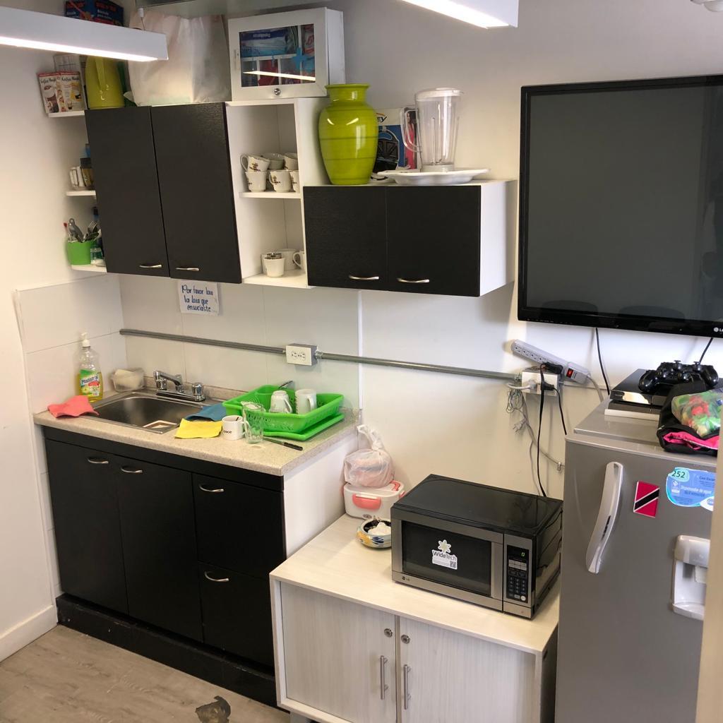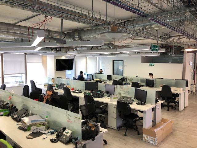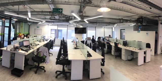 Descripción Excelente oficina amoblada con 75 puestos de trabajo, sala de juntas, oficina de gerencia con baño, cuarto de rack con estructura y patch panel instalados con cableado estructurado categoria 6A, cielo raso en concreto a la vista con iluminación LED, con sensores de movimiento, aire acondicionado, piso en vinilo imitación madera de trafico pesado, baterías de baños hombres y mujeres por piso. El edificio cuenta con planta eléctrica de suplencia total, recepción, 6 parqueaderos de visitantes, terraza - cafetería comunal y buenas vías de acceso.