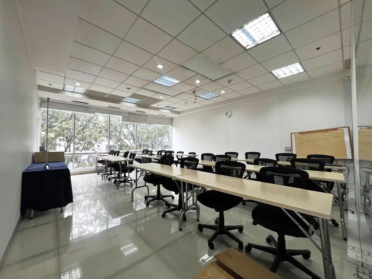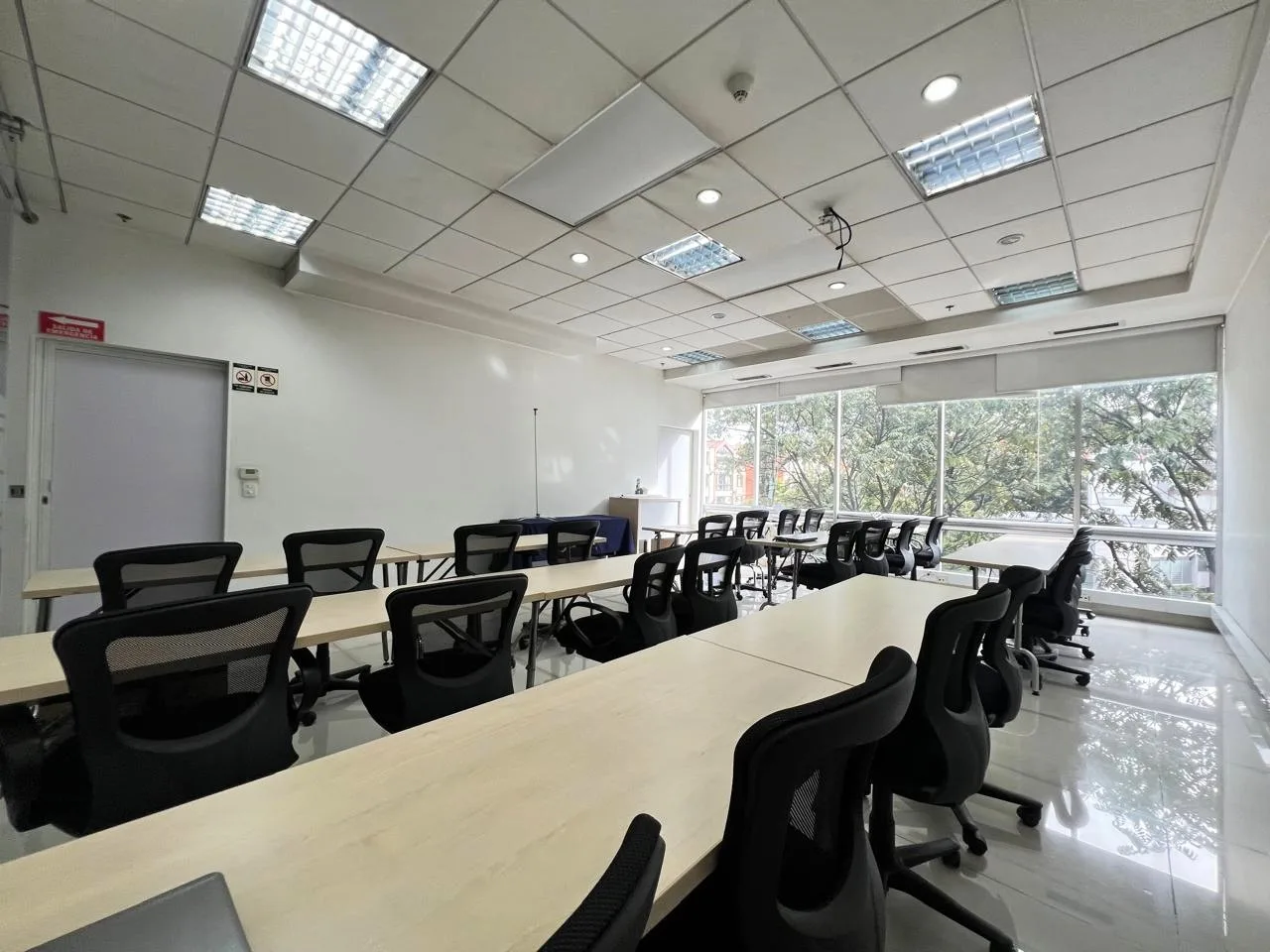 - Características Interiores: Aire Acondicionado, Alarma, Alarma Contra Incendio, Baños comunales, Baños Mixtos, Cableado de Red, Citófono, Cocineta, Control de acceso digital, Escalera de Emergencia, Gabinete de Incendios, Piso en Baldosa / Mármol, Rociadores de agua, Salón de videoconferencias, Tarjetas inteligentes, Tarjetas Magnéticas