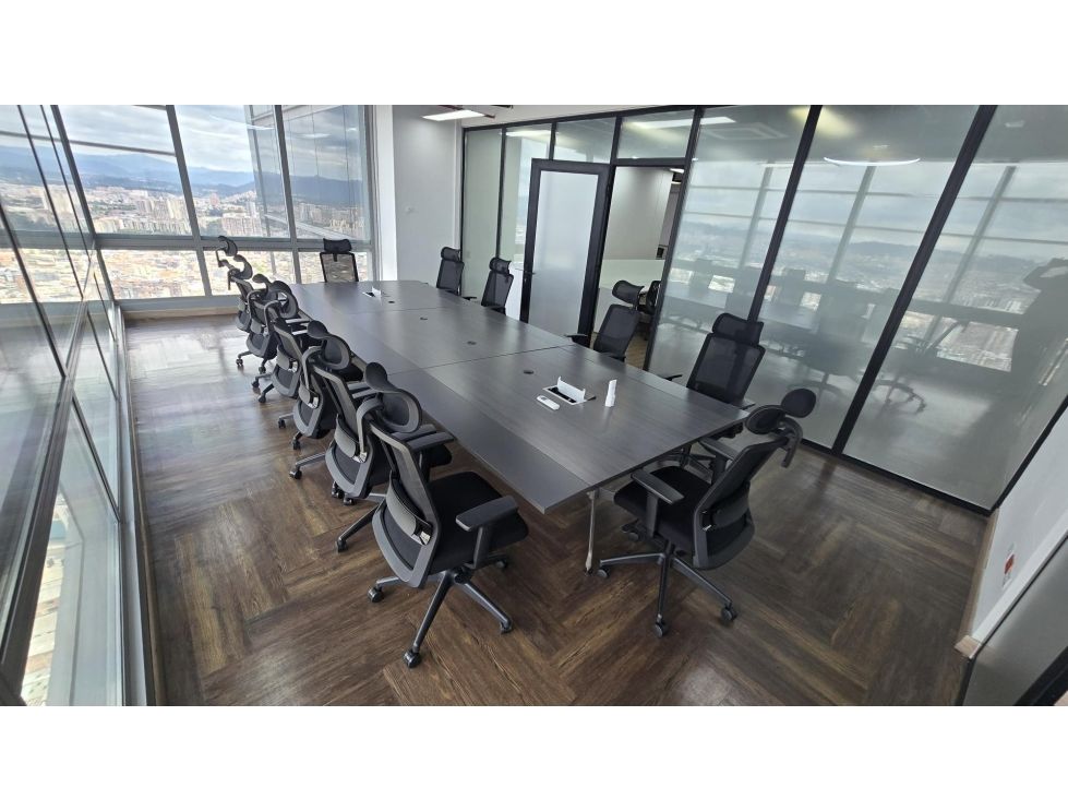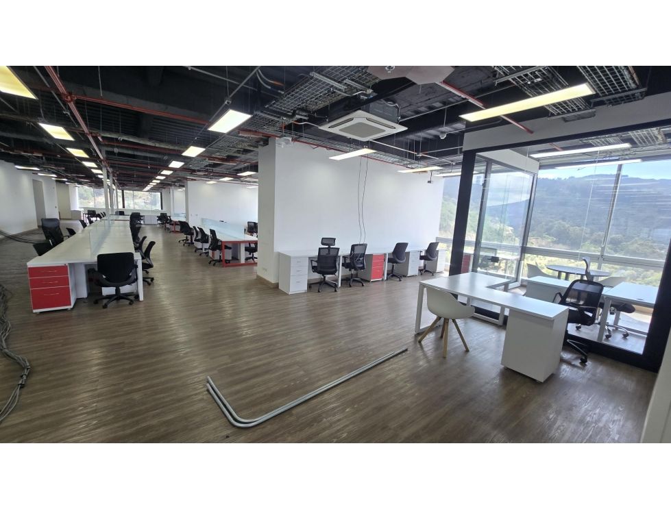 Oficinas totalmente amobladas con amplia zona de recepción con sala de espera, totalmente amoblada par 183 puestos de trabajo aprox con 10 oficinas privadas para administrativas + 1 oficina de gerencia con baño privado, 175 puestos de trabajo operativos, una sala de juntas con capacidad de hasta 16 personas, almacén de cafetería, amplio cuarto de archivo, cableado estructurado en categoría 6A para puntos de red con corriente regulada y normal (el interesado debe organizar el rack de comunicaciones) batería de baños interna para hombres (3 sanitarios, 2 orinales y 2 lavamanos) y batería de baños para mujeres (3 sanitarios y 3 lavamanos) Ubicado estratégicamente sobre la Carrera Séptima con calle 155C, la torre ofrece excelente conectividad con los principales corredores viales, transporte público y una amplia oferta de servicios complementarios como centros comerciales, entidades financieras, notarías y restaurantes - Entre sus principales características y servicios se incluyen: Lobby corporativo con control de acceso y seguridad 24/ con CCTV, ascensores de alta velocidad, auditorio principal para 160 personas, Sala N° 1 para 20 puestos, Sala N° 2 para 90 personas, Sala N° 3 para 12 personas, zona de cafetería, Gimnasio y en el primer nivel cuenta con un espacio de cafetería para aprox. 80 personas. Planta eléctrica con suplencia total - amplios parqueaderos privados y de visitantes - Infraestructura tecnológica y sistemas eficientes de climatización